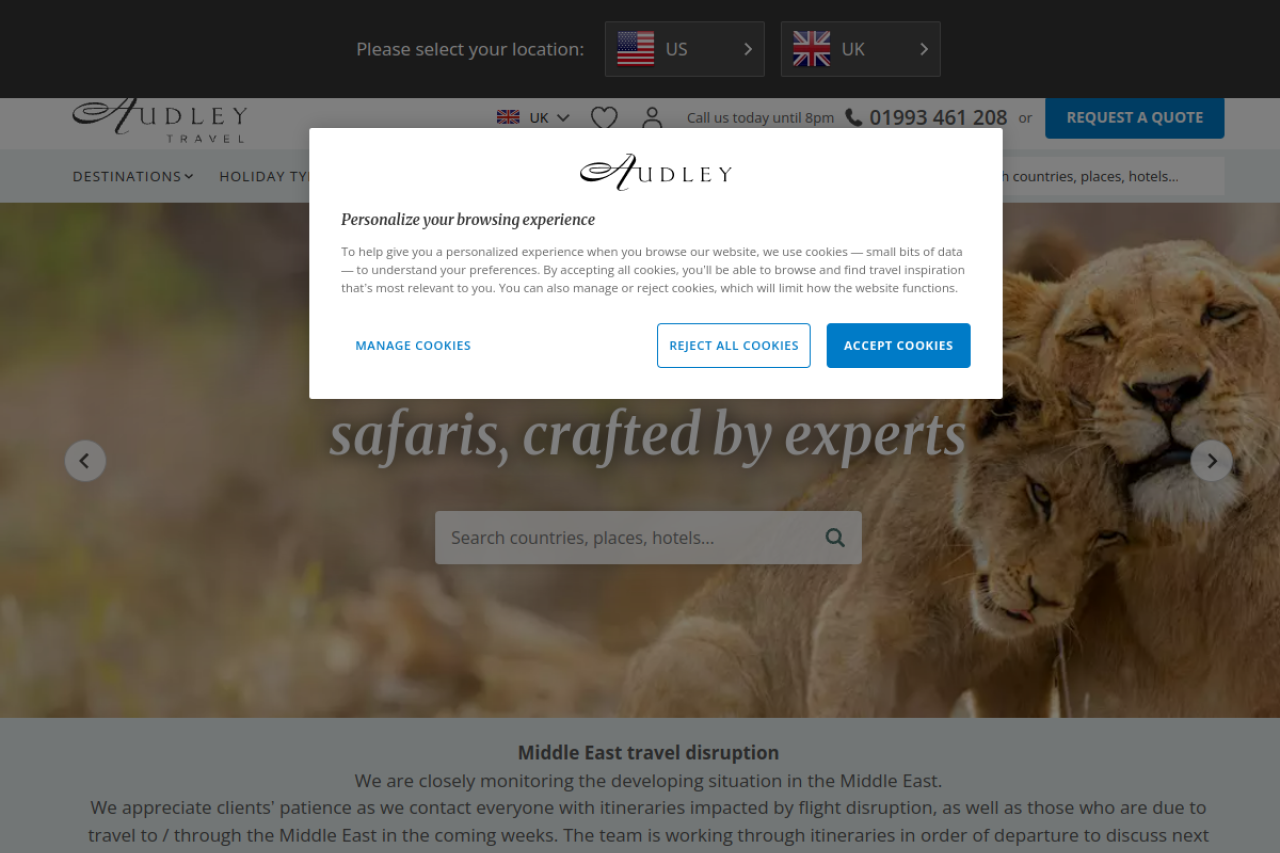 audleytravel.com looks like travel. Traffic signals point to roughly 1.8M monthly visits. Current AI trust scoring is 10/100.