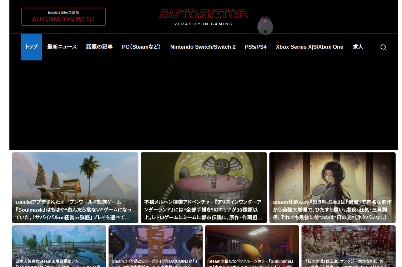 AUTOMATON(オートマトン)は、意見を誠実に伝えることを目指すビデオゲームWebメディアです。インディーからAAAタイトルまで、日本・海外を問わず、ニュースやレビュー、コラムなど、ライターの意見を載せたゲーム情報を配信しています。