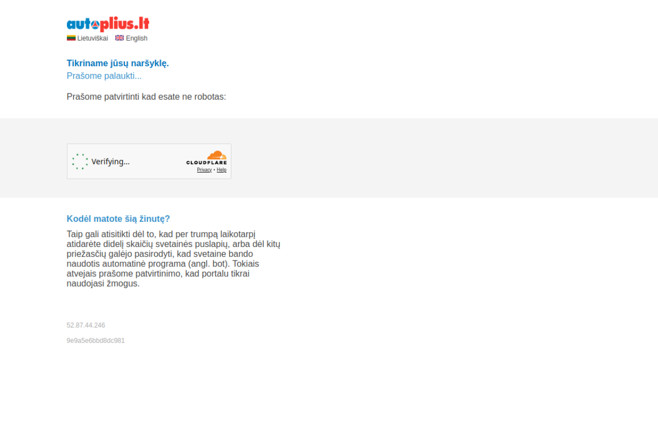 autoplius.lt looks like automotive. Traffic signals point to roughly 7.9M monthly visits. Current AI trust scoring is 15/100.