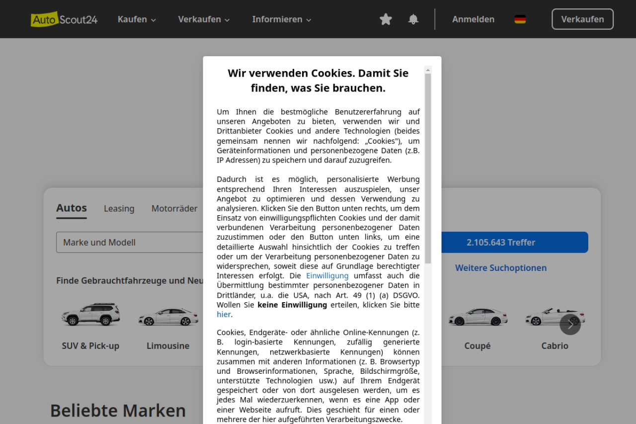 Neu- und Gebrauchtwagen sowie Motorräder, Wohnmobile und Nutzfahrzeuge finden Sie auf AutoScout24, dem europaweit größten Online-Automarkt.