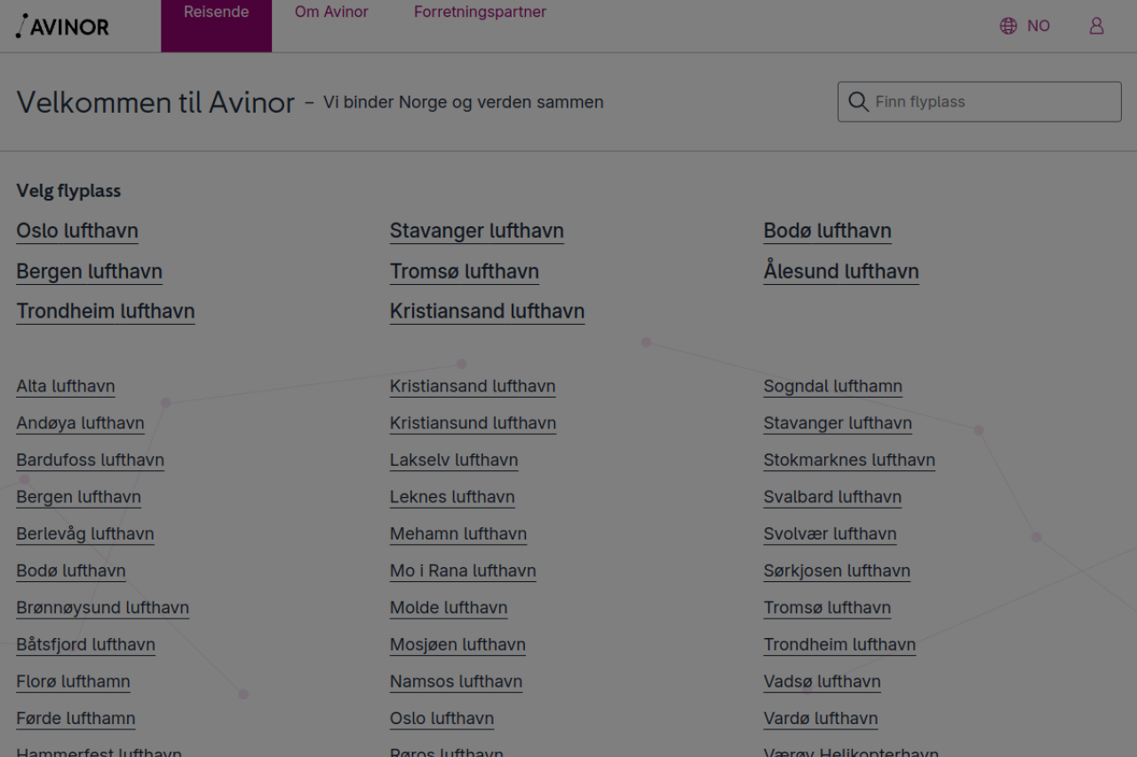 Avinor driver 43 flyplasser i Norge og tilbyr trygg og effektiv reise for 50 millioner passasjerer årlig. Finn flyplassinfo, tjenester og reisehjelp.