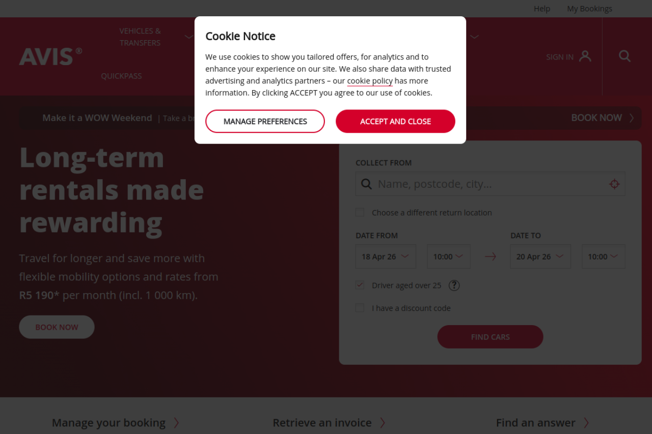 Avis Rent a Car - Car Rental Specials | Car Hire in South Africa
