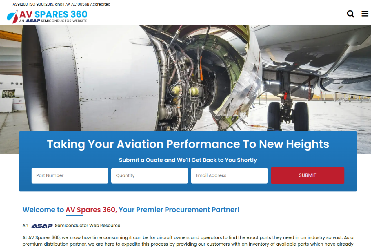 AV Spares 360 is one of the leading supplier of Commercial, Business and Regional jet civil aviation parts. Explore ATA, PMA, hardware parts and components.