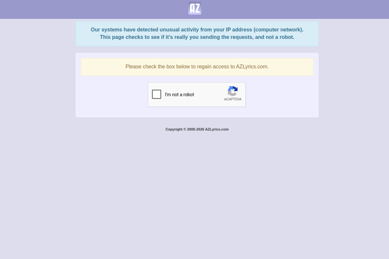 azlyrics.com looks like arts & entertainment. Traffic signals point to roughly 11.8M monthly visits. Current AI trust scoring is 15/100.
