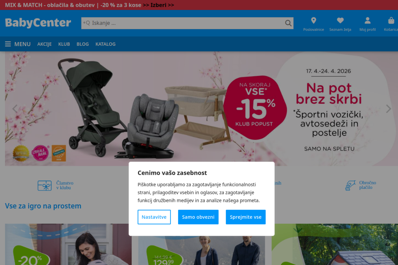 Vse za dojenčke, otroke in nosečnice na enem mestu. Izbirajte med vrhunsko otroško opremo, kakovostnimi pripomočki, kozmetiko, hrano, igračami, oblačili, obutvijo in pohištvom.