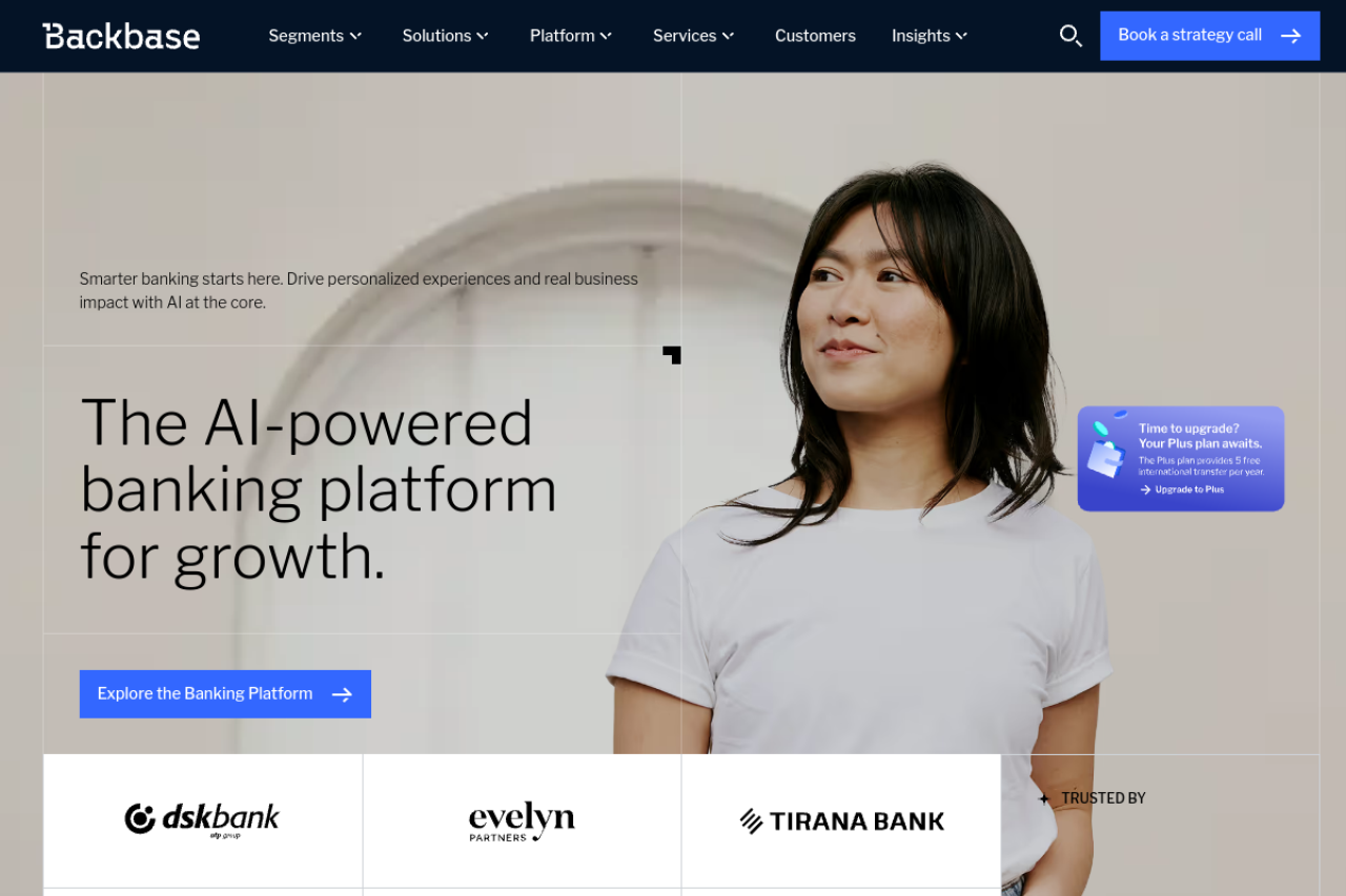backbase.com looks like banking & finance. Traffic signals point to roughly 70.5K monthly visits. Current AI trust scoring is 5/100.