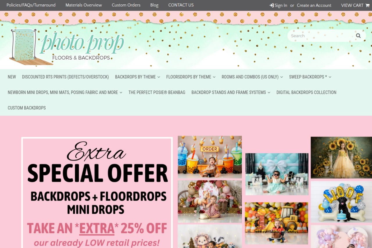 Custom printed photography backdrops and floors for professional photographers. Thousands of exclusive designs for cake smash, newborn, maternity, and studio photography, printed and shipped worldwide with consistent quality and fast delivery.