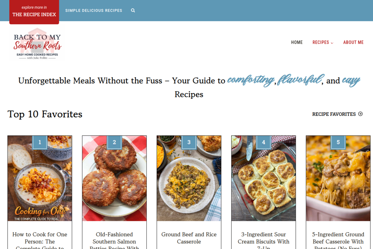 backtomysouthernroots.com looks like food and drink. Traffic signals point to roughly 401.2K monthly visits. Current AI trust scoring is 5/100.