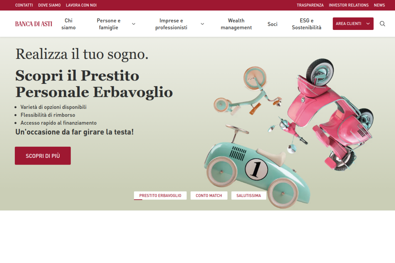 Scopri Banca di Asti: servizi online, conti correnti, investimenti e prestiti per persone e imprese. Siamo al tuo fianco con soluzioni su misura.