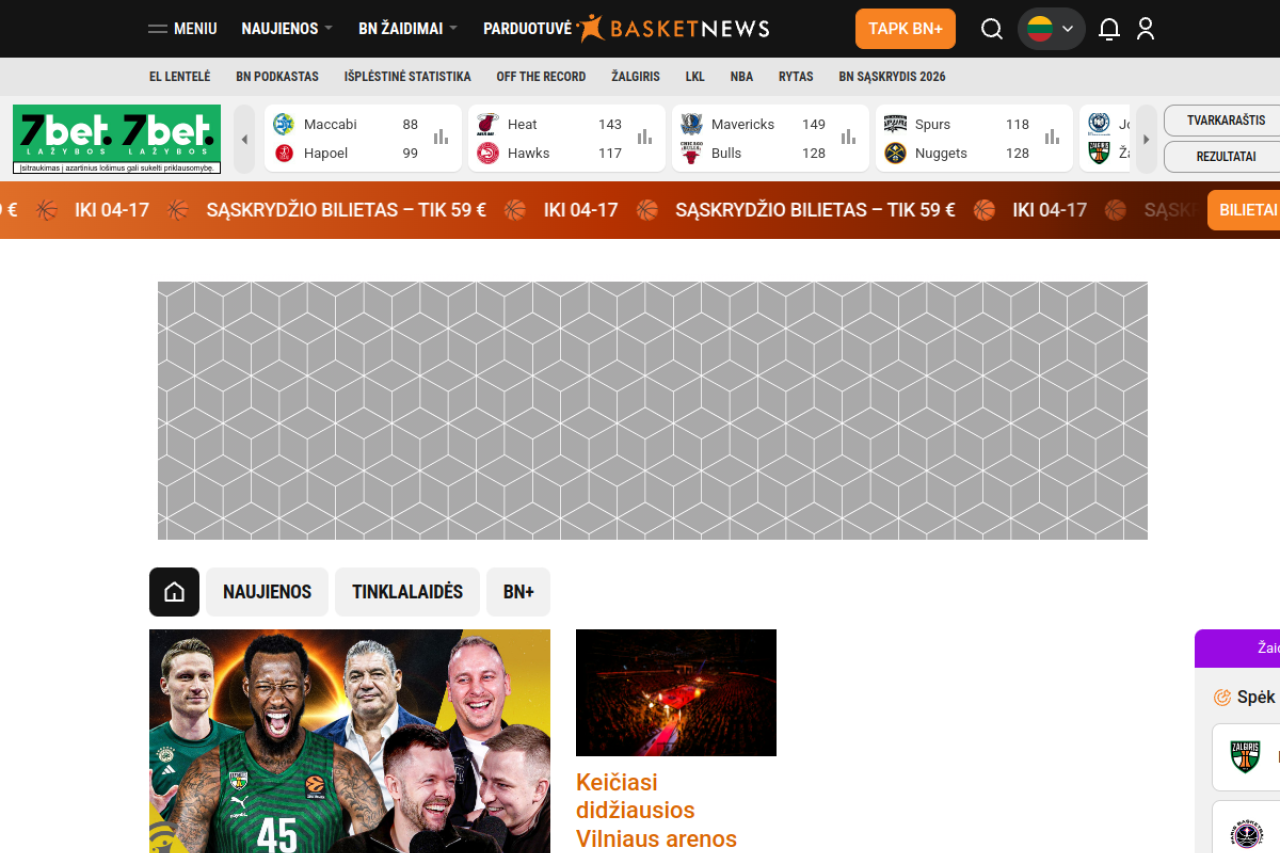 Krepšinio naujienos, video, podkastai, tvarkaraštis, rezultatai, statistika, turnyrinės lentelės ir dar daugiau apie „Žalgirį“, „Rytą“, LKL, Eurolygą, NBA ir kt