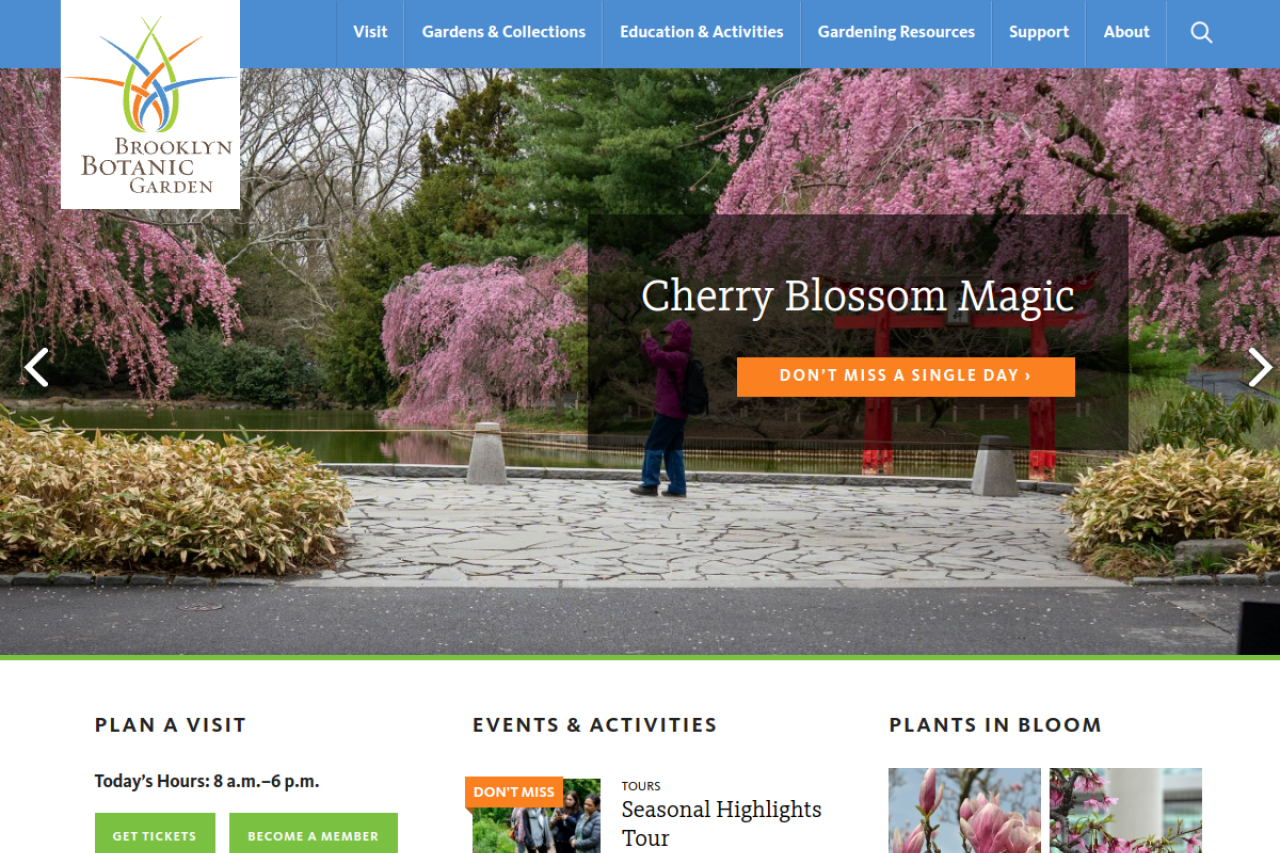 Welcome to Brooklyn Botanic Garden. Stroll 52 acres of plants and flowers displayed in a variety of landscapes and engage with nature programs and special events.