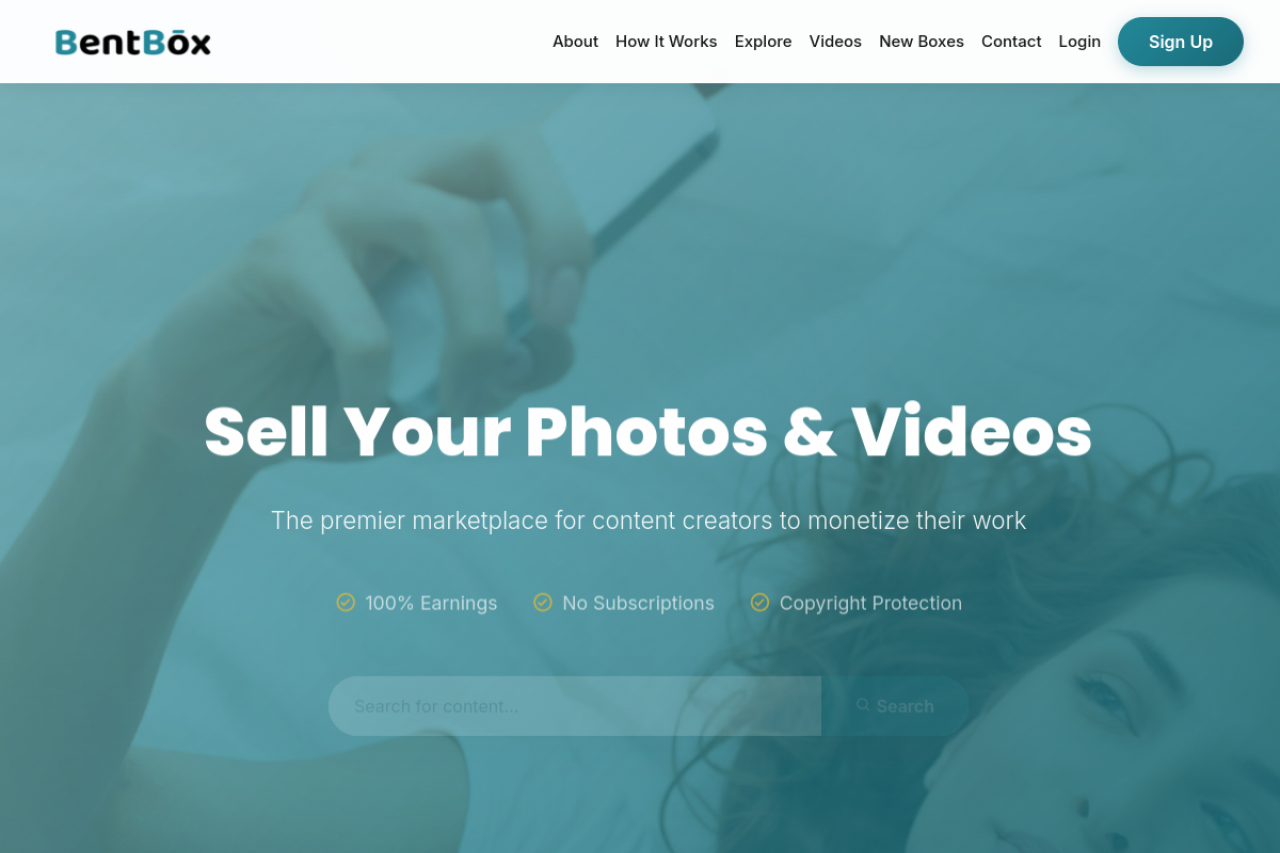Monetize your content on BentBox. The premier marketplace for creators to sell photos and videos. No subscriptions, secure payments, and you keep 100% of your sales.
