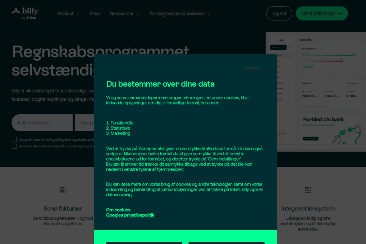 Billy er et gratis regnskabsprogram til små og mellemstore virksomheder. Send let fakturaer, og få styr på moms og bogføring. Opret en bruger på 2 minutter.