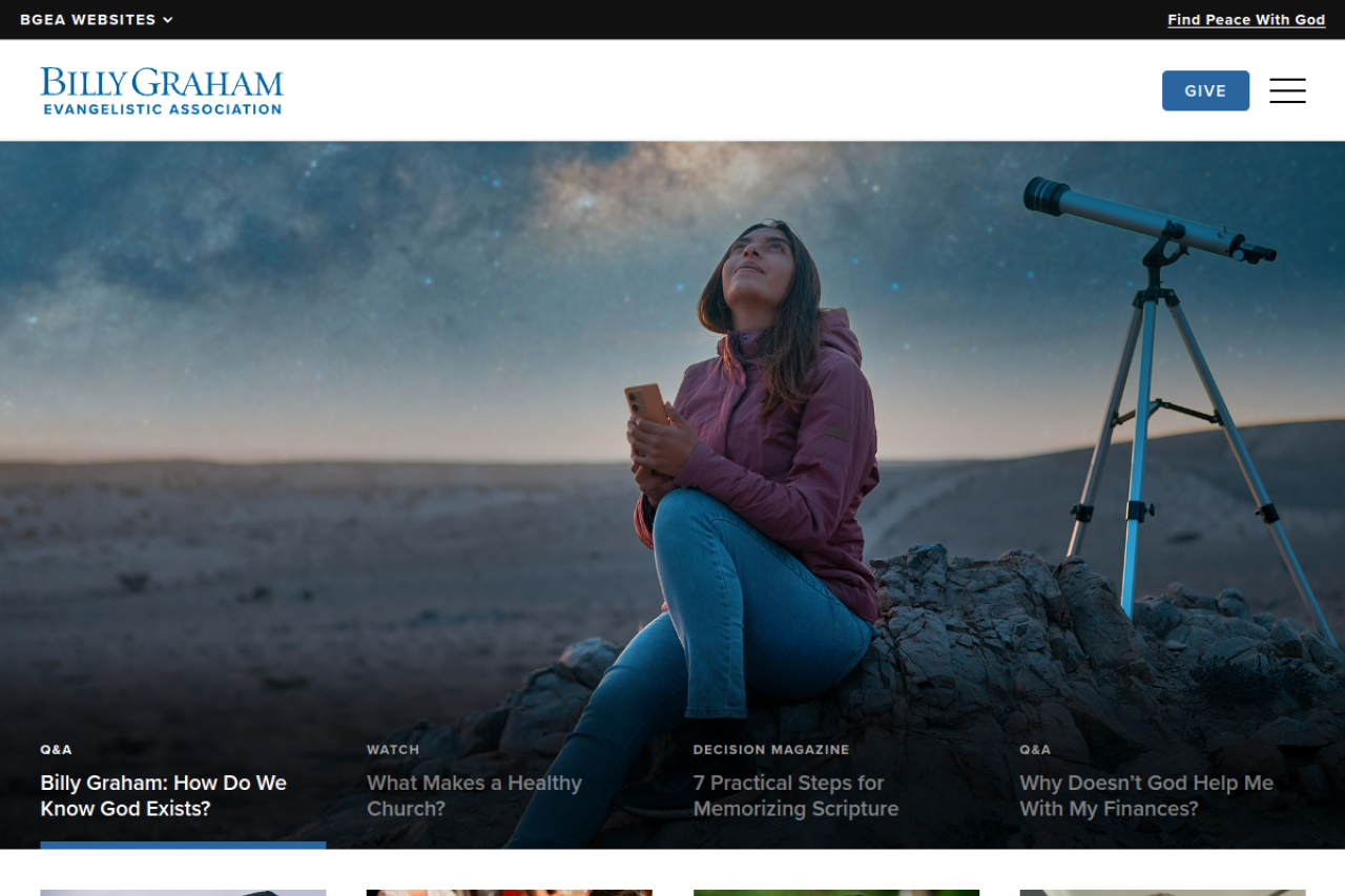 BGEA, founded by Billy Graham, is a Christian non-profit dedicated to sharing the Gospel of Jesus Christ and empowering others to do the same.
