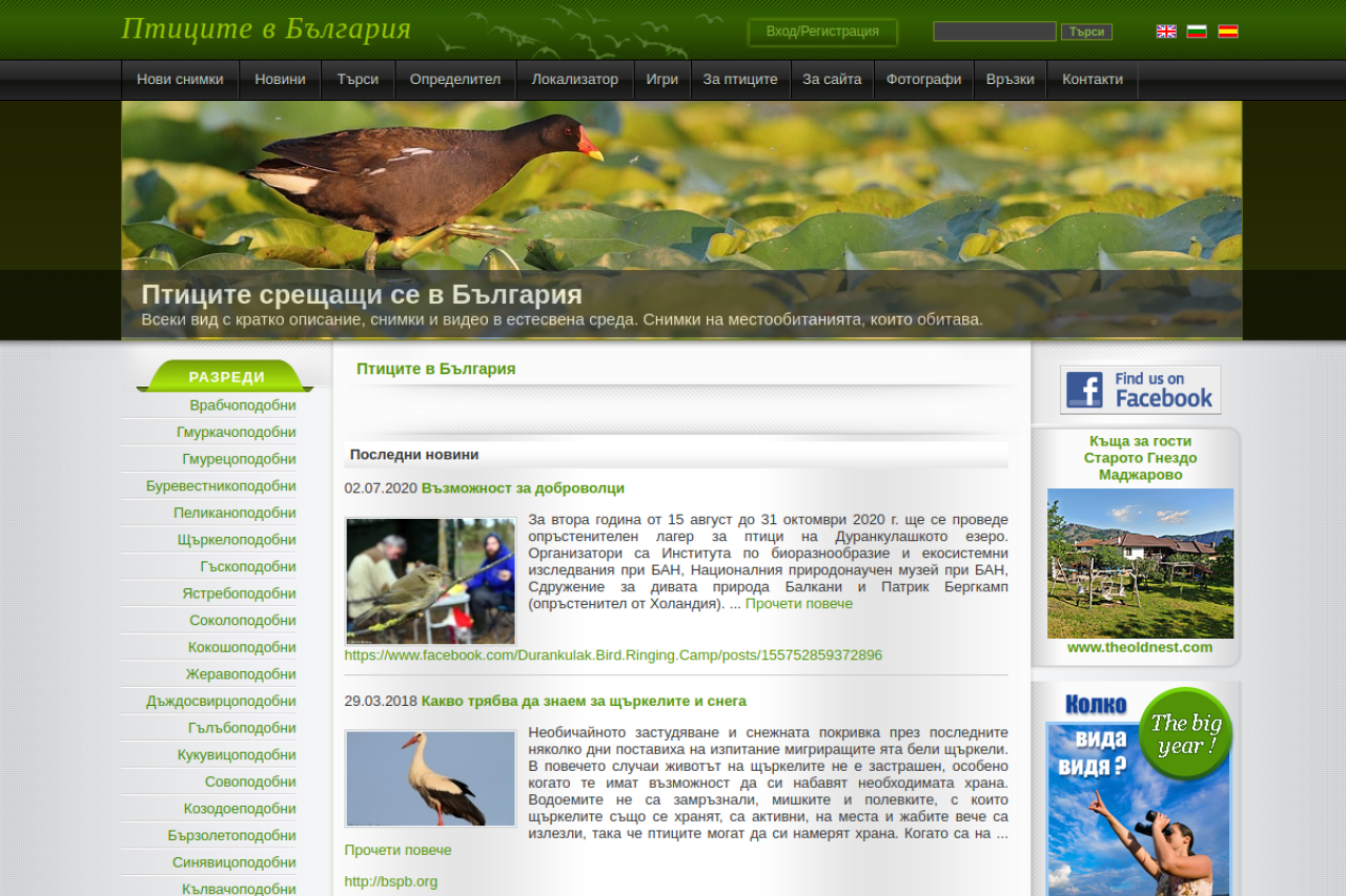Птиците срещащи се в България, On-line определител. Към всеки вид има кратко описание, снимки на вида в естесвената му среда и на местообитанията, които обитава.
