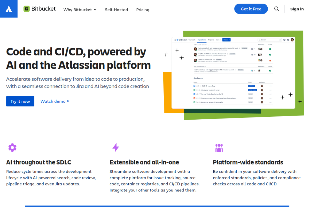 Bitbucket Cloud is a Git-based code and CI/CD tool optimized for teams using Jira.