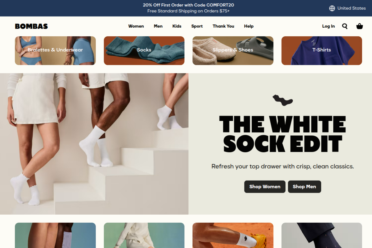 Bombas is a comfort focused sock and apparel brand with a mission to help those in need. One purchased = one donated, always and forever.