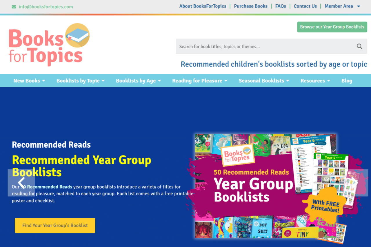BooksForTopics helps find recommended children’s books, booklists for subjects, the best new children’s books, and recommendations by age or year group.