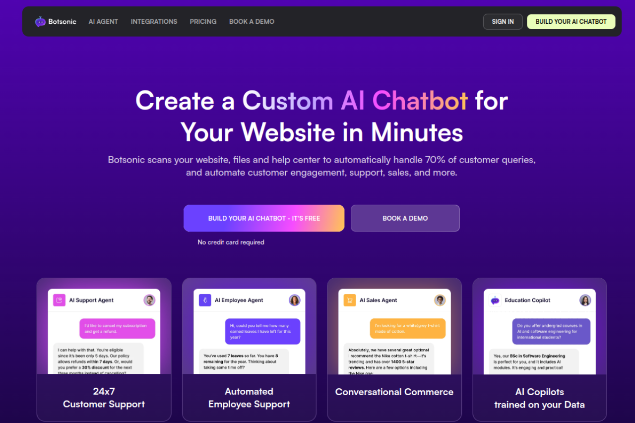 View all 6 alternatives and competitors to botsonic.com.