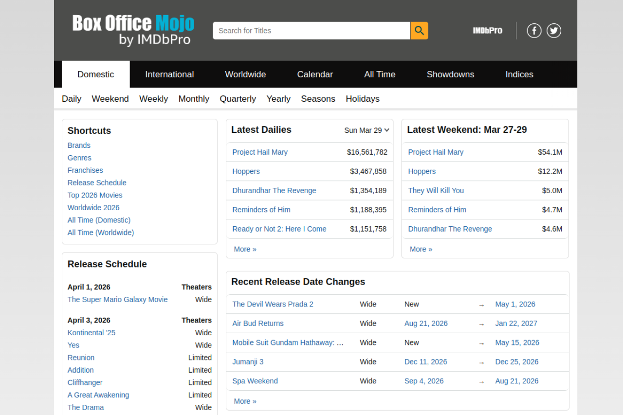 View all 6 alternatives and competitors to boxofficemojo.com.