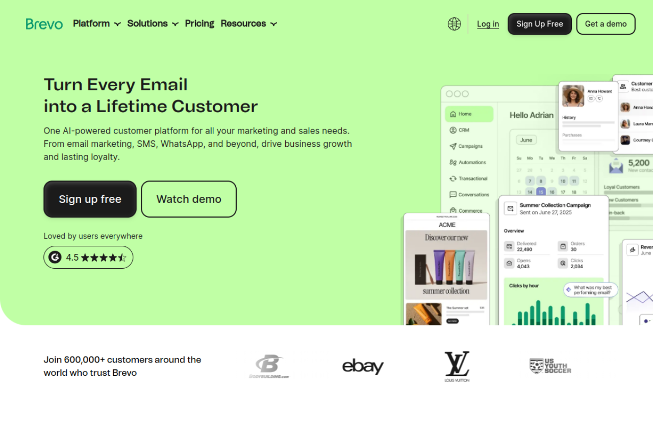 Brevo is the most intuitive all-in-one customer engagement platform: email and SMS marketing, automation, CRM, live chat, and transactional email. Try it free.