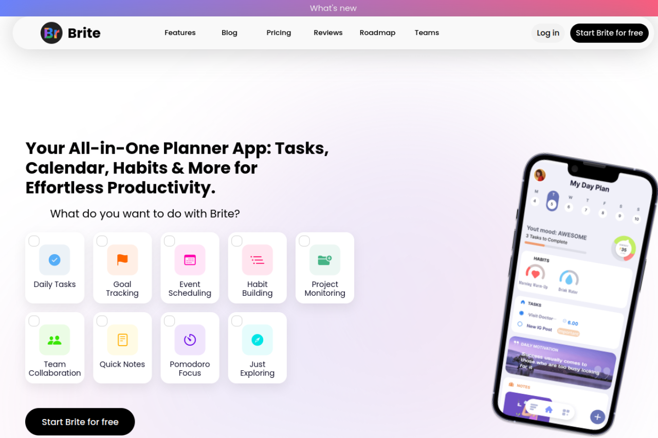 Get your life organized and achieve your goals with Daily Planner App Brite – the ultimate productivity app that combines tasks, calendar, habits, notes, routines, goals, and 20+ features in one app for iPhone, iPad, Mac, and web.