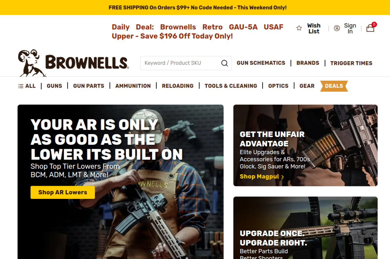 brownells.com looks like sports. Traffic estimates are limited, so use the trust and structure modules first. Current AI trust scoring is 15/100.
