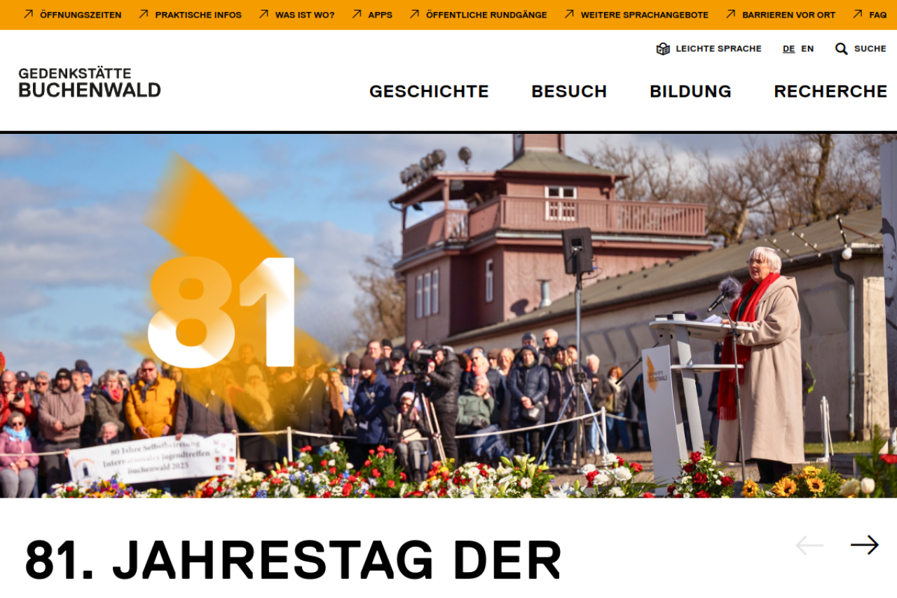 Offizielle Website der Gedenkstätte Buchenwald mit allen Informationen zur Vorbereitung eines Besuches und zum historischen Ort.