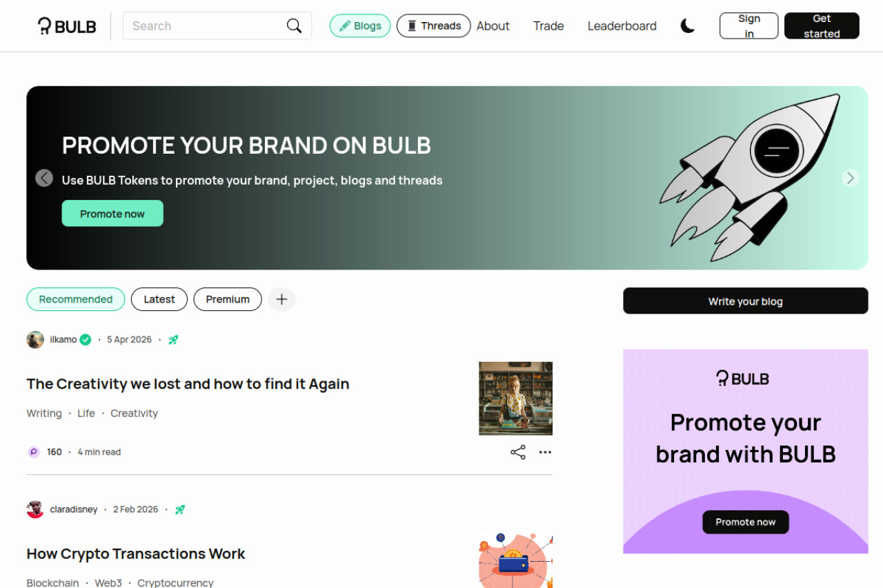 Join a like minded community of writers, readers, memers, dreamers, believers, creators and opinion leaders to co-create value for all BULBers on the platform.