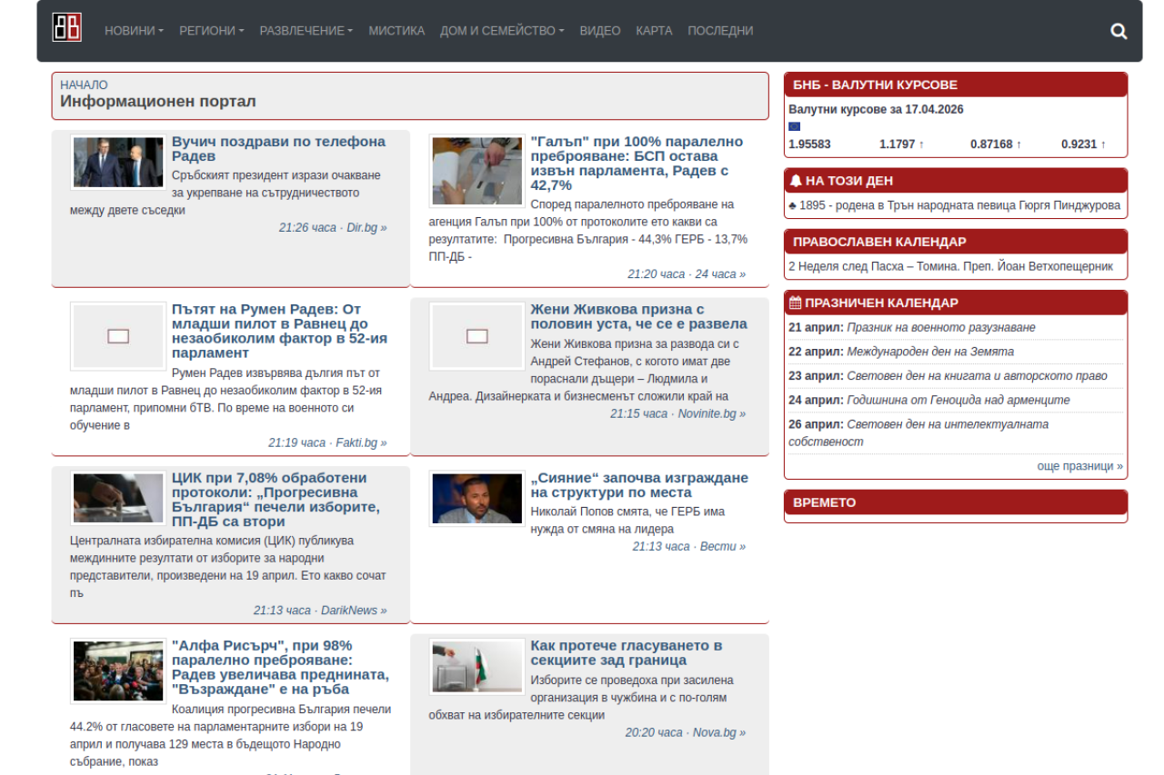 НАЧАЛО: Информационен портал за новини, събития, справки, хороскопи, времето, автомобили, вицове, готварски рецепти, игри.