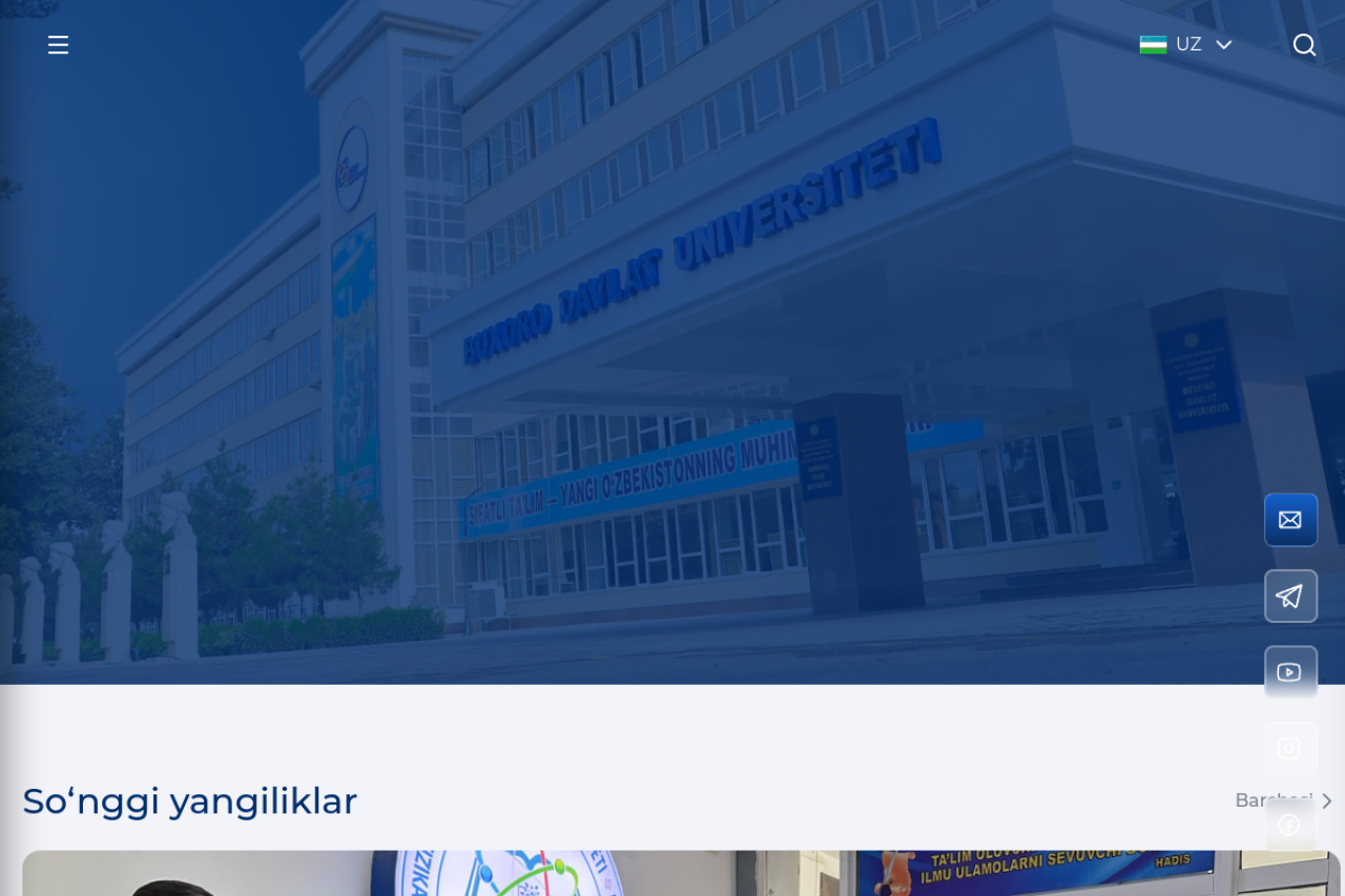 Buxoro davlat universitetining rasmiy web sayti, The official website of Bukhara State University, Официальный сайт Бухарского государственного университета, ushbu web saytimiz orqali siz talabalarni o`zlashtirishi,rektorat haqidagi ma`lumotlar va universitet hududida bo`lyotgan so‘nggi yangiliklardan xabardor bo`lishingiz mumkin, Вы можете быть в курсе событий на нашем сайте, получать информацию о ректоре и последние новости в университете, you can keep up to date on our website, get information about the rector, and the latest news in the university