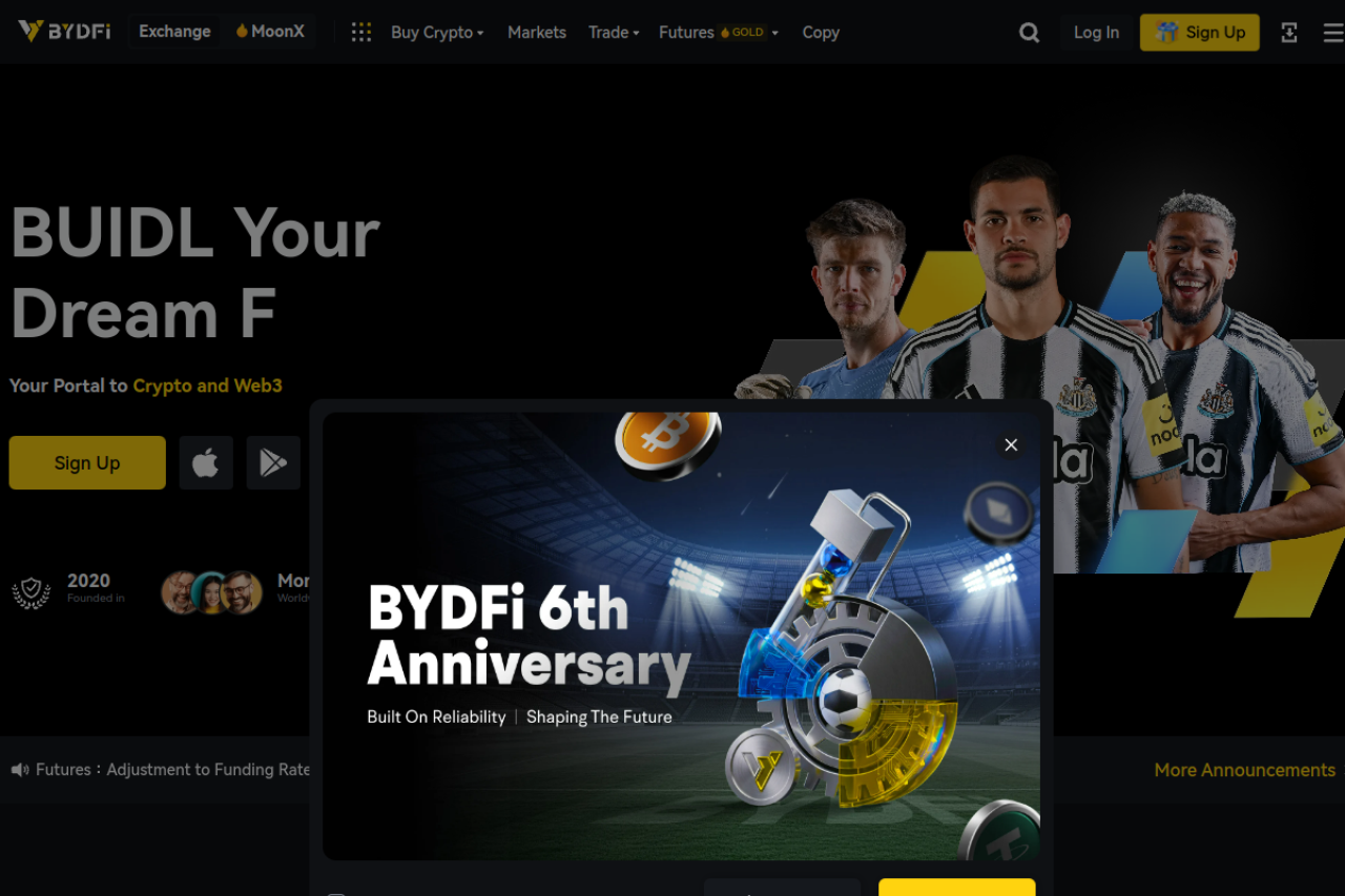 BYDFi (BitYard) - Top crypto exchange since 2020. Trade 1000+ altcoins and 500+ perpetual contracts with up to 200x leverage. Register now for a 8,100 USDT bonus!
