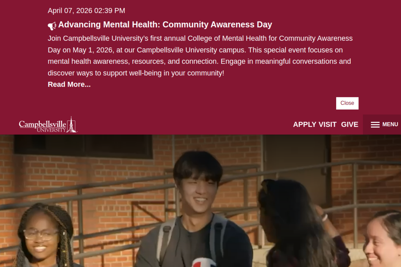 Campbellsville University is a Christ-centered, nationally recognized institution in Kentucky offering undergraduate, graduate, and online programs. Explore admissions, academics, student life, athletics, and faith-based learning in a welcoming, service-minded community.