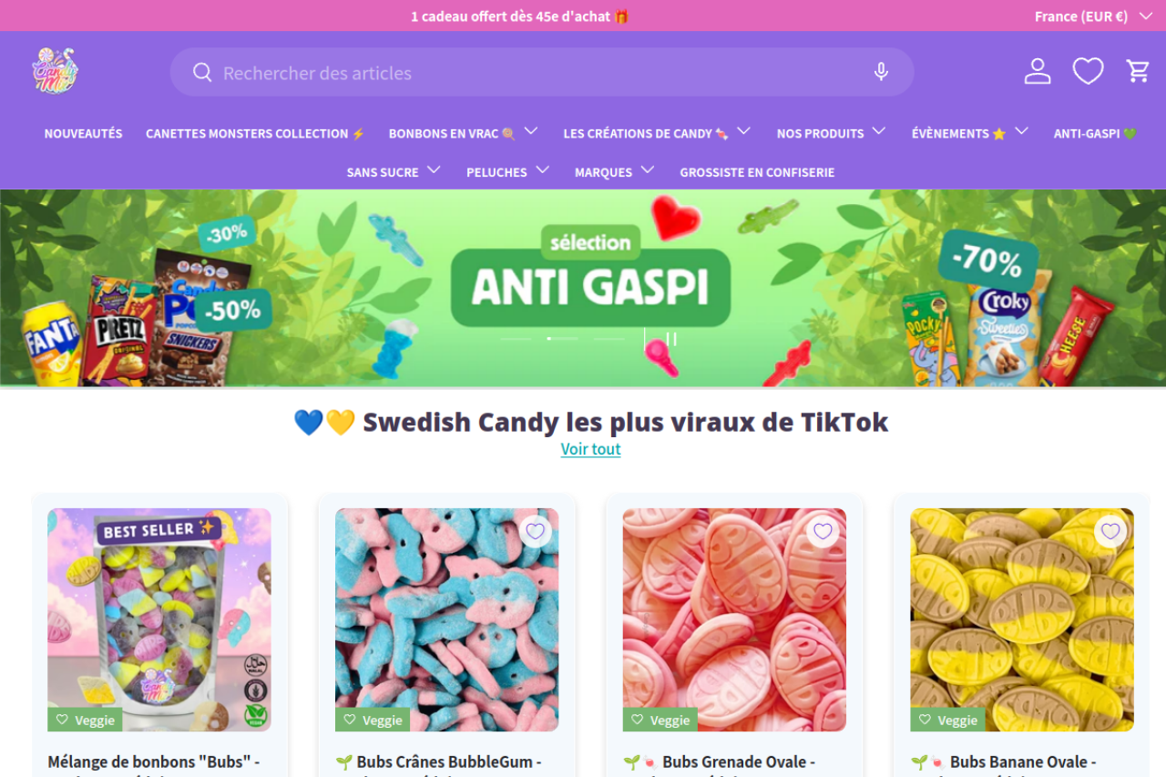 Rejoins le N°1 de la confiserie en ligne avec +140 000 colis expédiés ! La plus grande sélection de bonbons en vrac, bonbons sans sucre et bonbons suédois. Cadeau offert dès 45€.