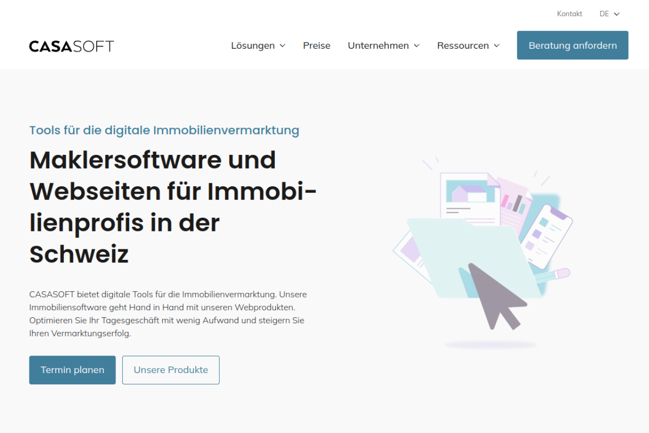 CASASOFT entwickelt digitale Produkte für die Immobilienvermarktung. Maklersoftware und Webseiten. Template oder Massgeschneidert.