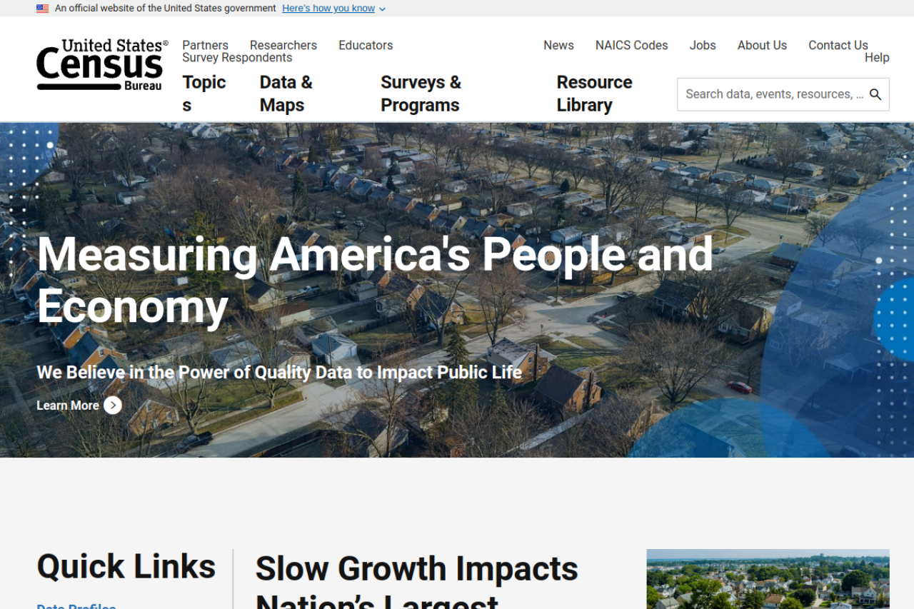 census.gov looks like government. Traffic estimates are limited, so use the trust and structure modules first. Current AI trust scoring is 0/100.