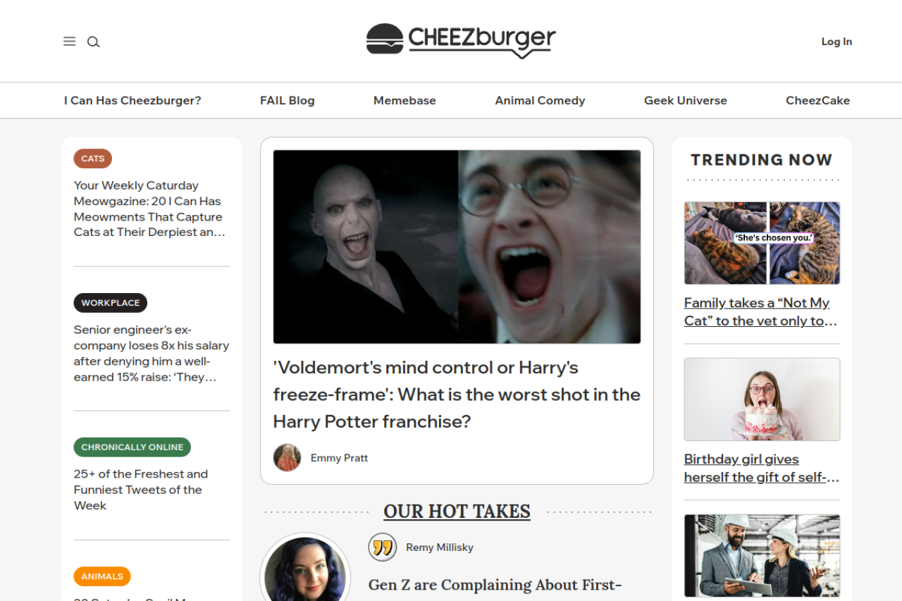 cheezburger.com looks like arts & entertainment. Traffic estimates are limited, so use the trust and structure modules first. Current AI trust scoring is 15/100.