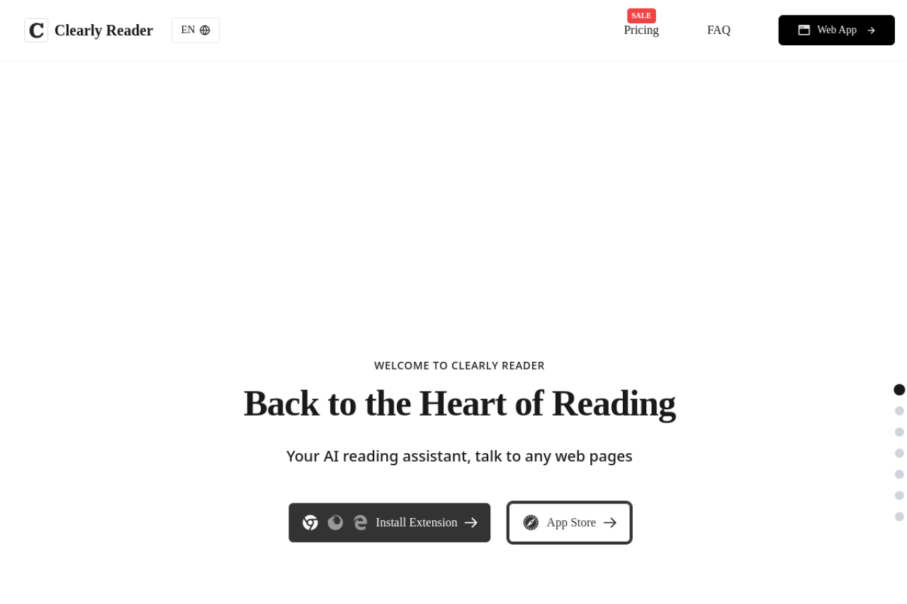 Clearly Reader offers a premium reader mode for browsers, allowing you to effortlessly read online content. As one of the best reading extensions available, it features powerful text-to-speech, intelligent summaries, multilingual translation, customizable themes, and more - all designed to make your reading experience more comfortable and efficient.