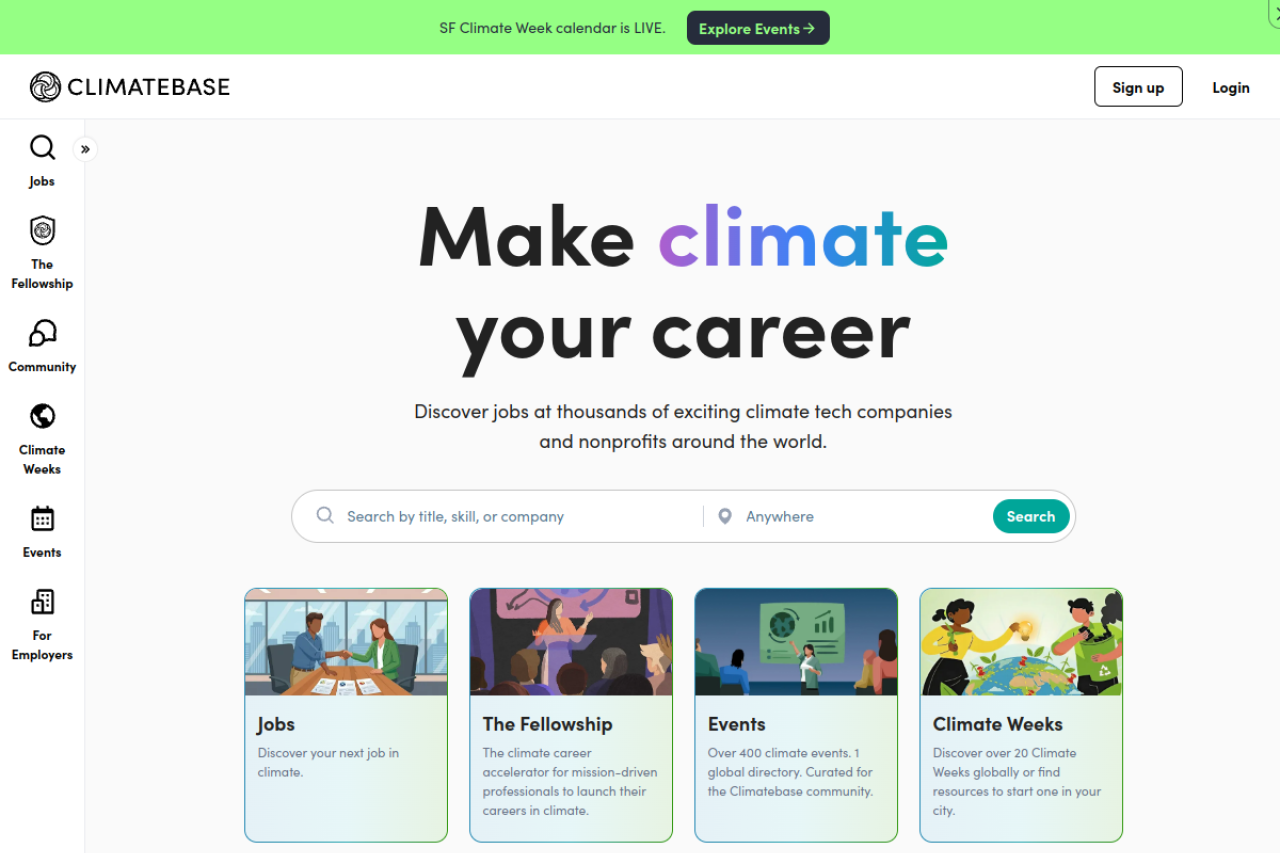 climatebase.org looks like careers. Traffic estimates are limited, so use the trust and structure modules first. Current AI trust scoring is 5/100.