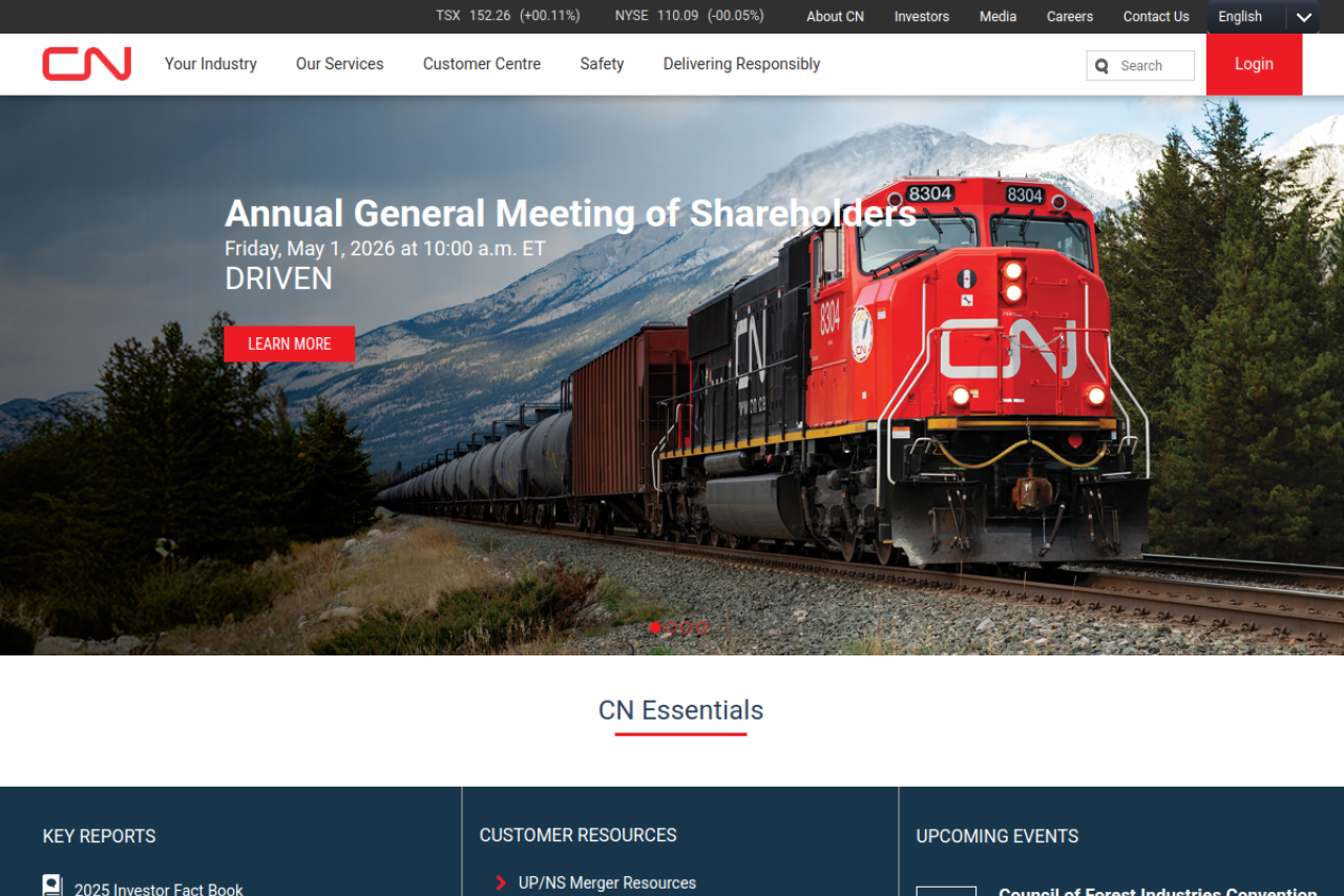 CN - Transportation Services - Rail Shipping, Intermodal, trucking, warehousing and international transportation