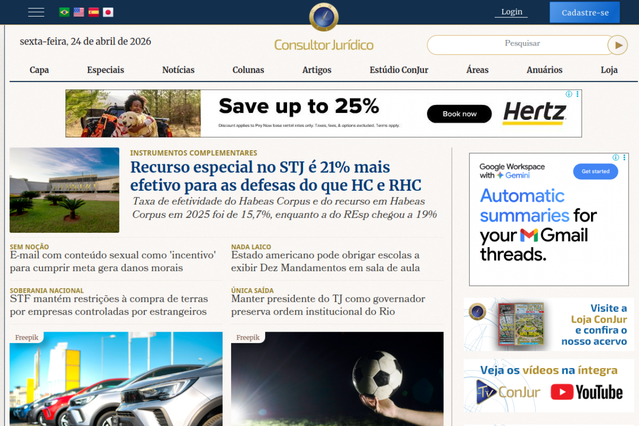 O mais completo veículo independente sobre Direito e Justiça em língua portuguesa. Dezenas de notícias, artigos e entrevistas diariamente.