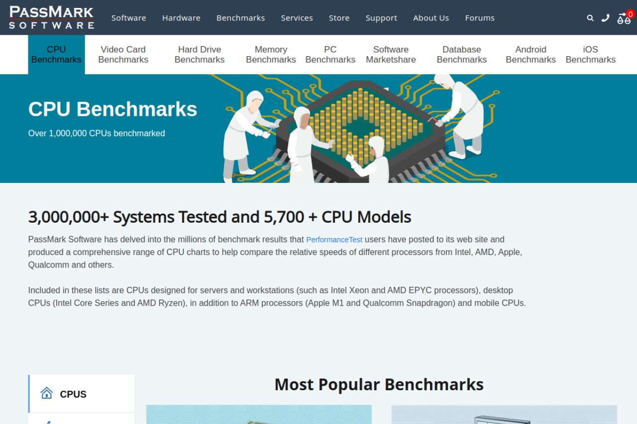 PassMark Software - CPU Benchmarks - Over 1 million CPUs and 3,000,000 models benchmarked and compared in graph form, updated daily!