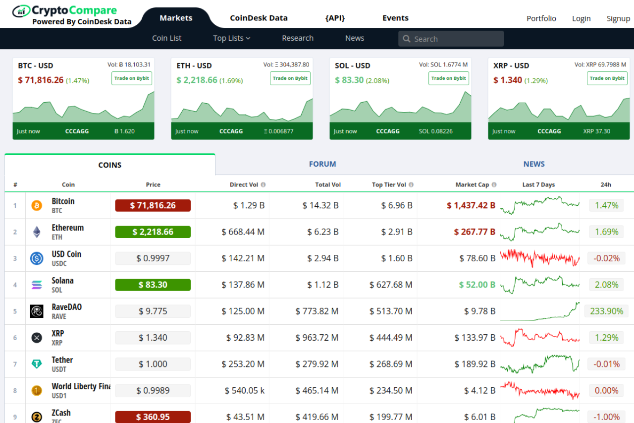 Cryptocurrency Prices, Portfolio, Forum, Rankings | CryptoCompare.com