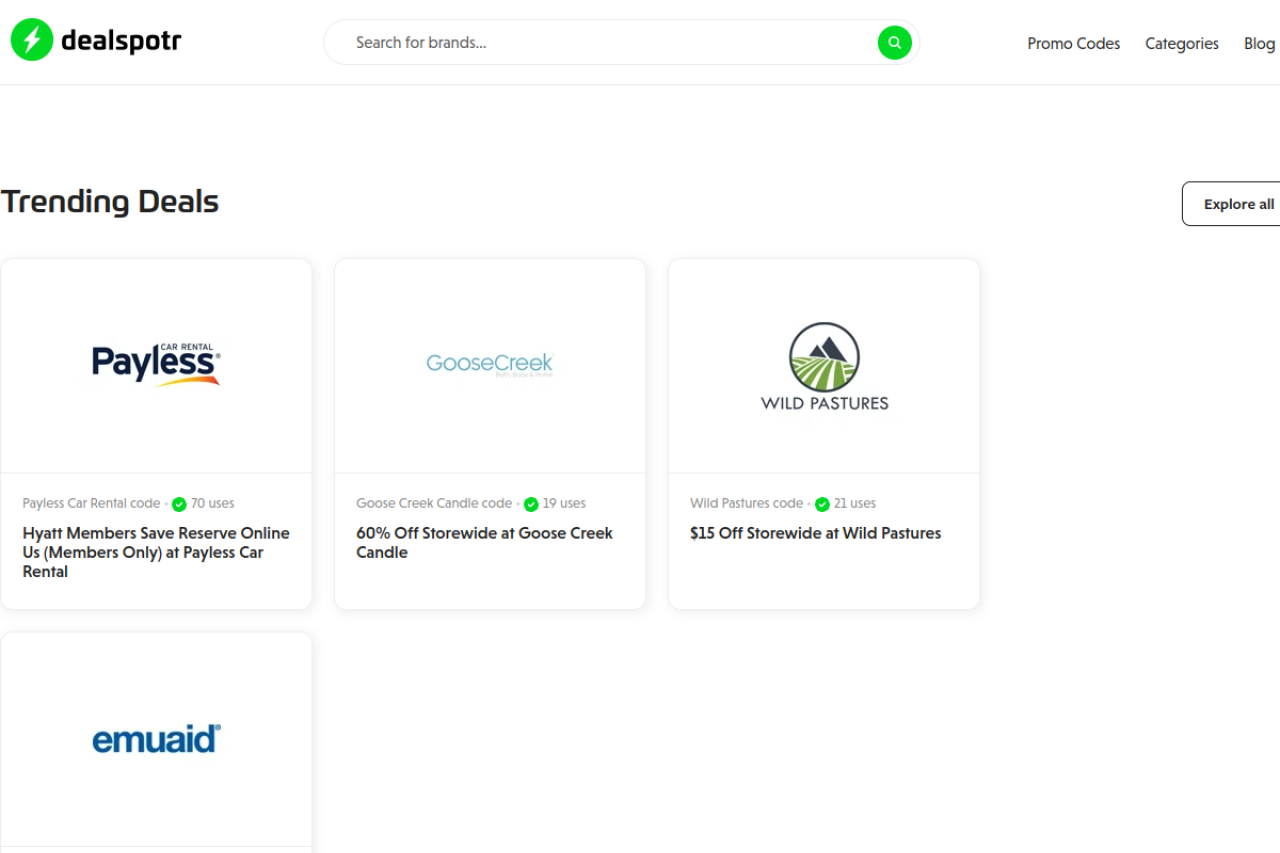 Discover the smart way to save up to 70% with Dealspotr! Find verified coupon codes and promotions from over 300,000 brands and merchants, all verified by real people. Shop smarter, save time, and save money with the best deals and discounts at your fingertips.