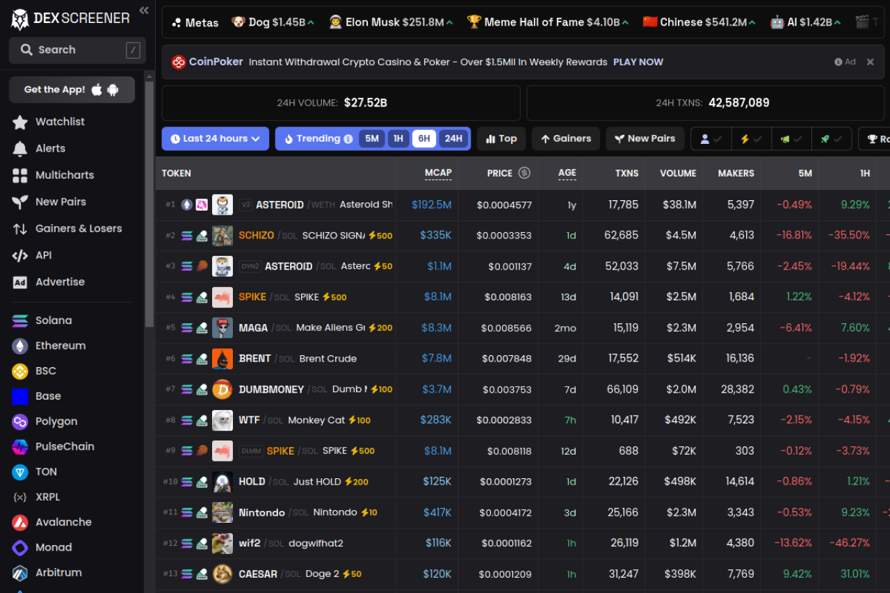 dexscreener.com looks like technology & computing. Traffic estimates are limited, so use the trust and structure modules first. Current AI trust scoring is 15/100.