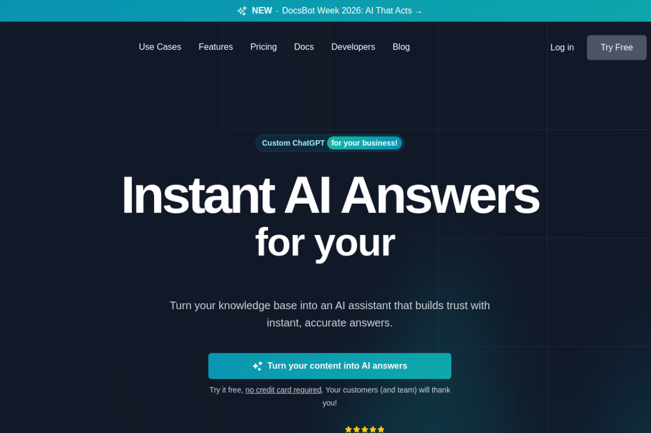 Custom ChatGPT bots trained on your documentation and content for support, presales, research, and more.