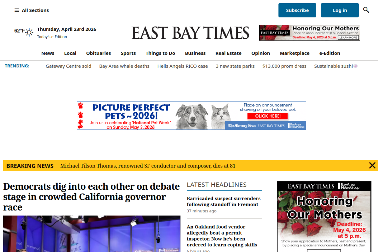 East BayTimes is the leading source of breaking news, local news, sports, entertainment, lifestyle and opinion for Contra Costa County, Alameda County, Oakland and beyond