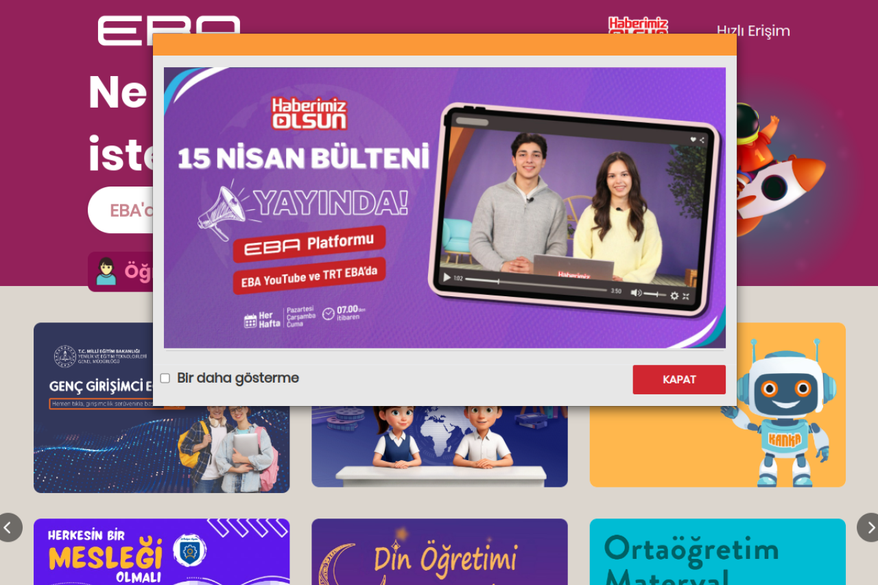 Eğitim Bilişim Ağı öğretmenler ile öğrenciler arasında iletişim kurmak, eğitim hayatları boyunca kullanabilecekleri materyalleri sağlamak üzere kurulan eğlenceli bir portaldir.