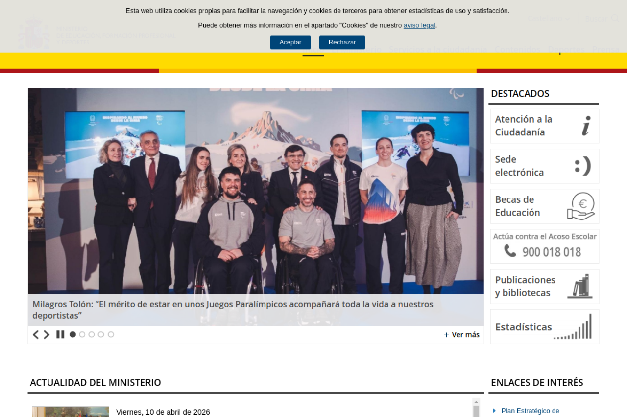 Web del Ministerio de Educación, Formación Profesional y Deportes. Información para estudiantes, profesorado y centros educativos sobre su actividad.