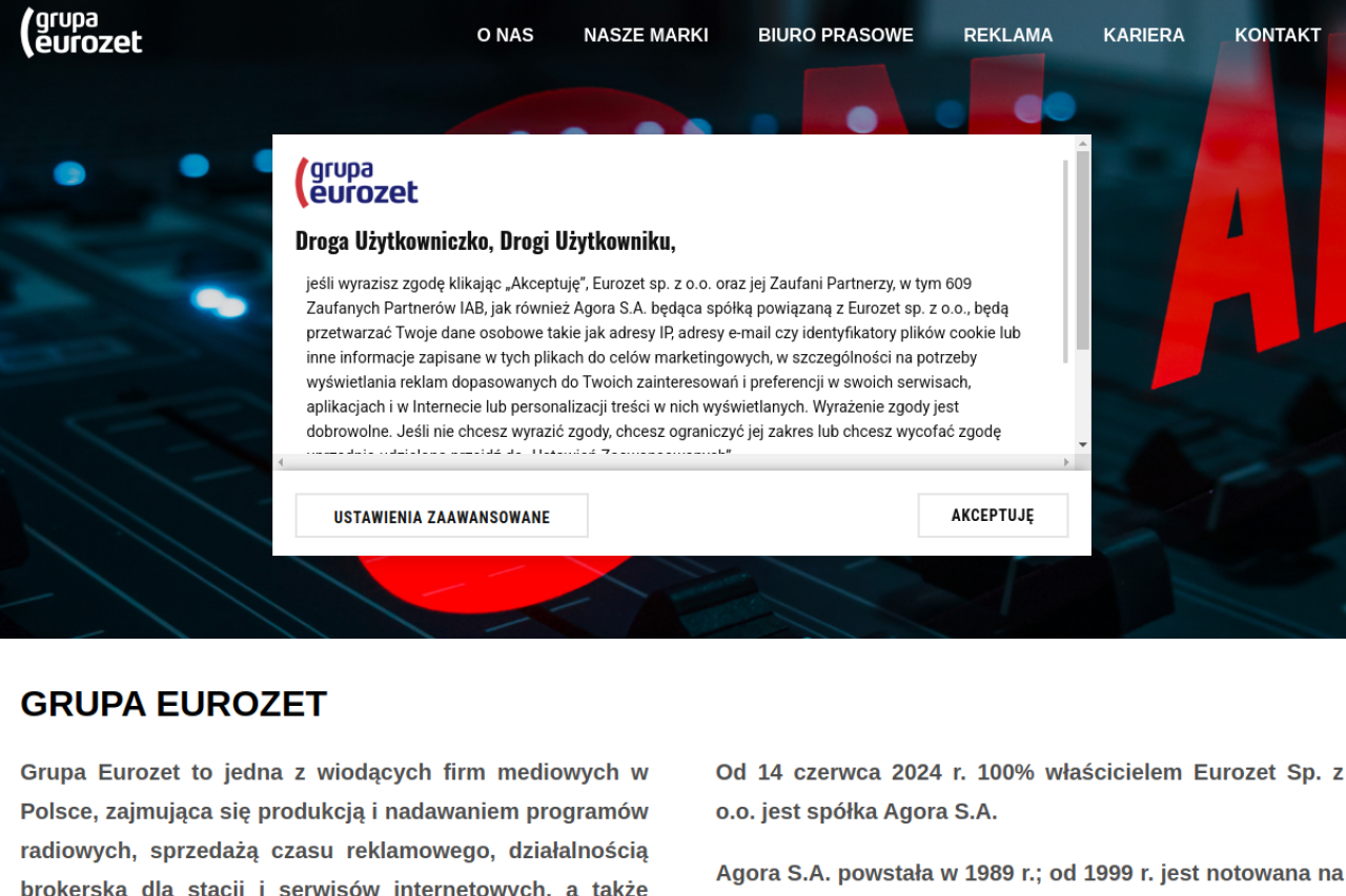 eurozet.pl looks like media & entertainment. Traffic estimates are limited, so use the trust and structure modules first. Current AI trust scoring is 15/100.